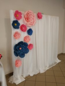 A Menyasszony által készített fotófal virágokkal:)